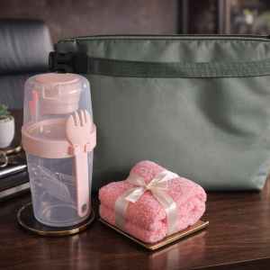 Salad Cup Set with Microfiber Towel and Insulated Thermal Bag (500ml + 300ml) with Fork
