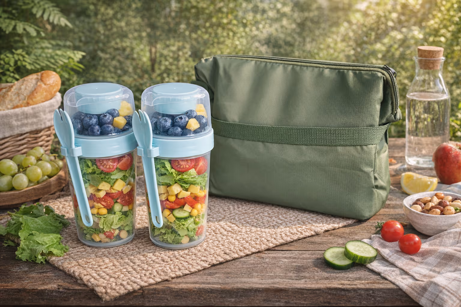 2-Piece Salad Cup Set with Insulated Thermal Lunch Bag