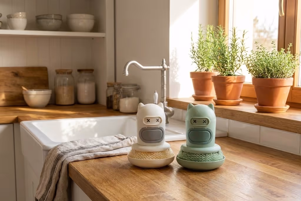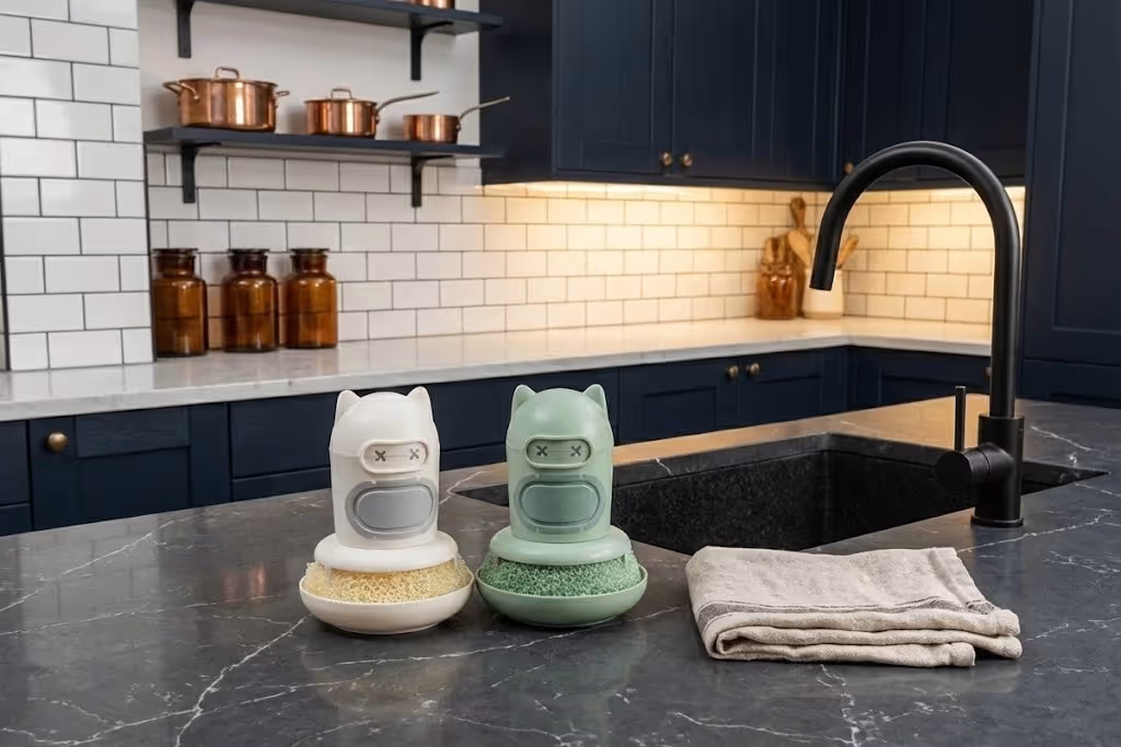 Add a touch of whimsy to your kitchen sink with this charming and practical dish scrubbing brush. Designed to look like a cute little cat (or perhaps a stealthy ninja!), this tool makes washing dishes less of a chore and more of a delight.