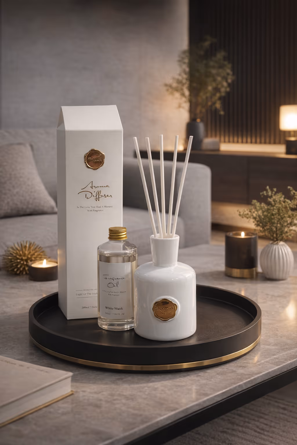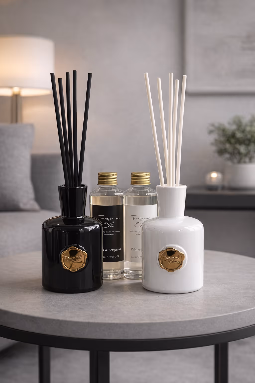 Transform your home with our Luxury Reed Diffuser. Available in 200ml Black (Oud & Bergamot) or White (Musk), these long-lasting sets provide effortless style and scent.