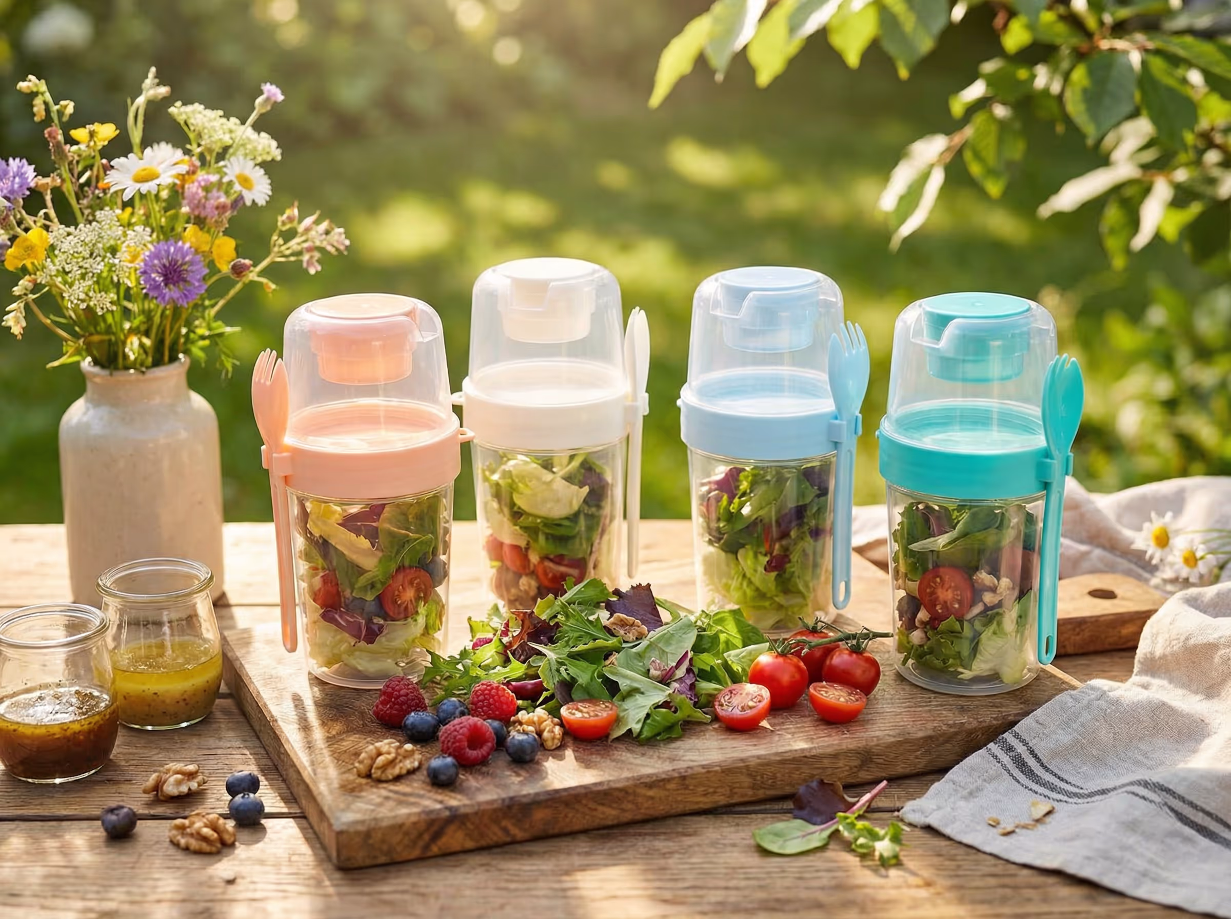 This portable salad cup is ideal for travel, outdoor activities, and busy lifestyles.